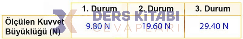 Cevap: Kuvvetin büyüklüğünü dinamometre ile ölçtük.